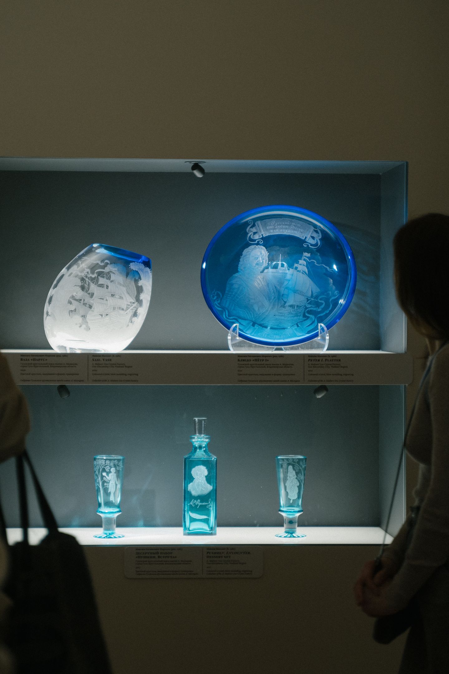 Основатель бюро Poisson Spot Мария Горохводацкая и архитектор Майя Фролова провели экскурсию по выставке «На грани. Искусство гранения и гравировки стекла».